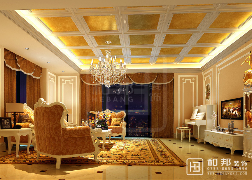 利用簡歐的精致簡潔,再加上整體的淡黃色基調,配合燈光家具,打造一個舒適典雅的家居環境。