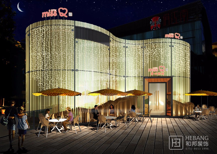 三個圓形相互結合到一起組成了一個整體,極具創意的現代建筑設計給人耳目一新的感覺。外部全部飾以鋼化玻璃與內部的吊飾燈具相結合更顯現代感。